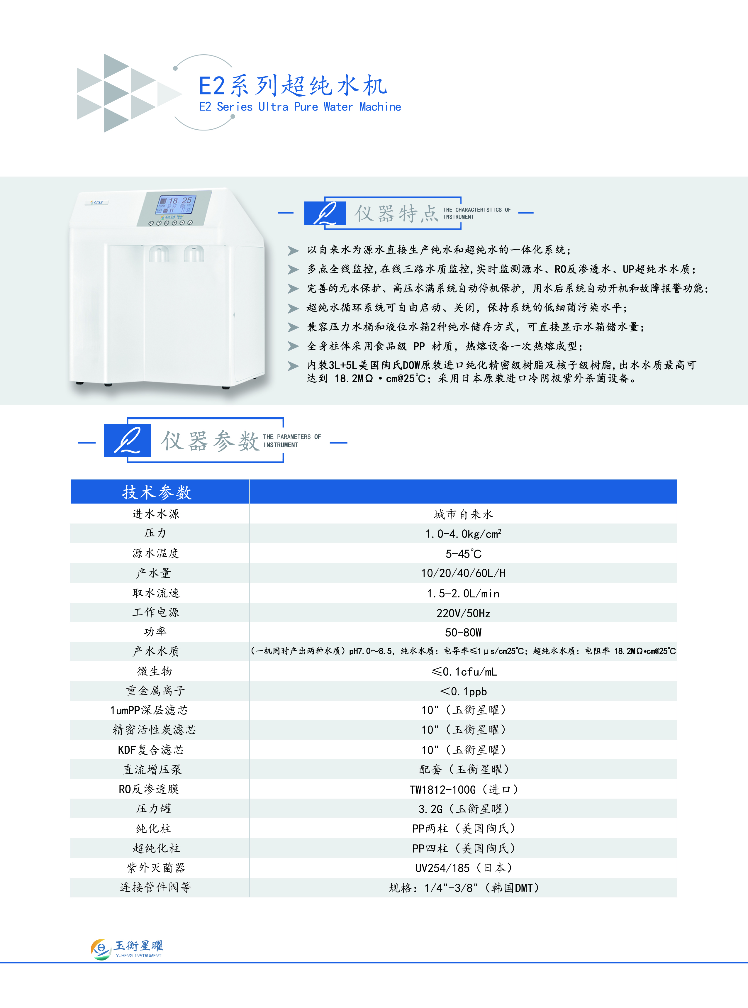 7、內裝3L+5L美國陶氏DOW原裝進口純化精密級樹脂及核子級樹脂,出水水質最高可達到 18.2MΩ·cm@25℃;采用日本原裝進口冷陰極紫外殺菌設備。