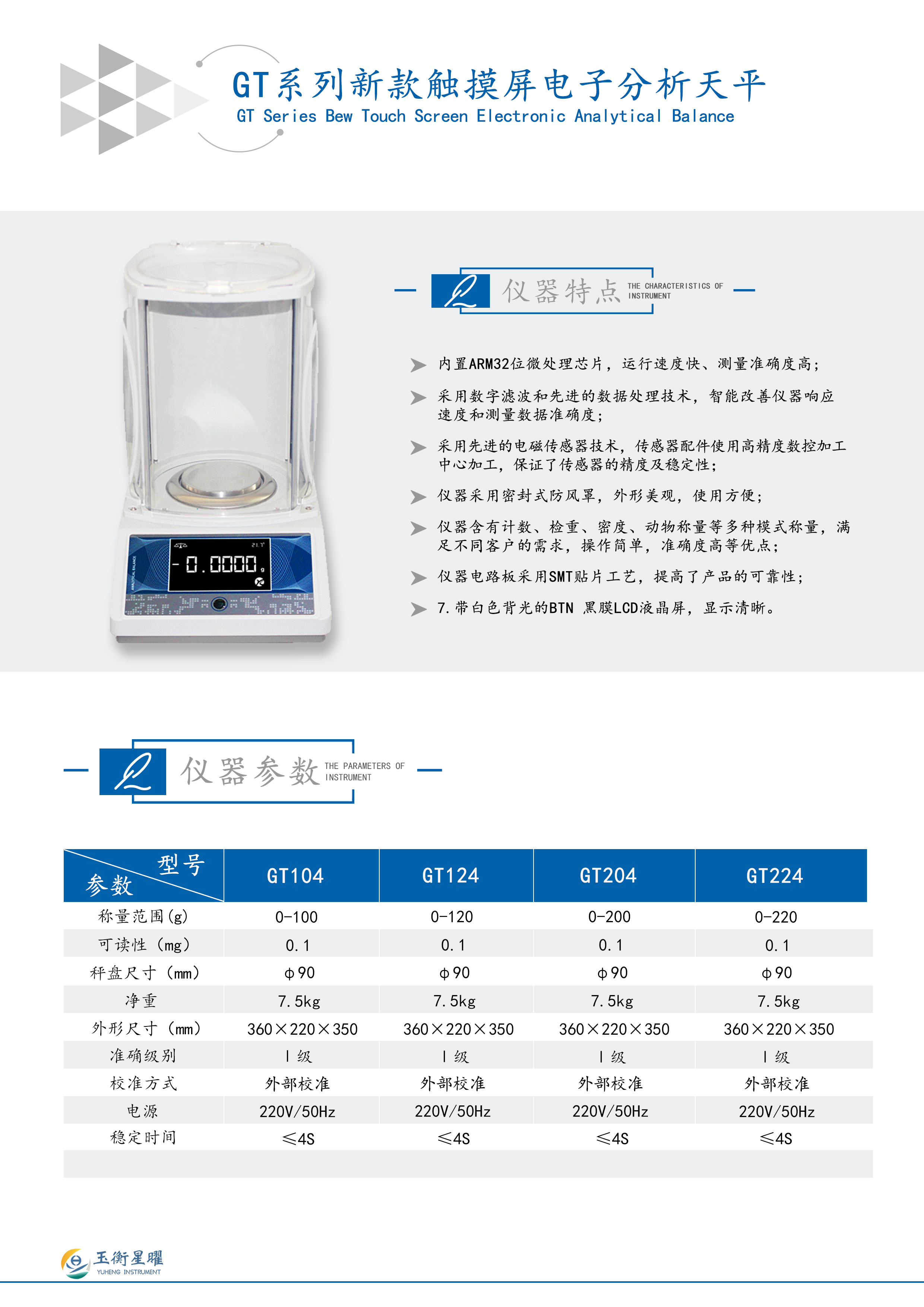 GT系列 新款觸摸屏電子分析天平 (萬分位天平)