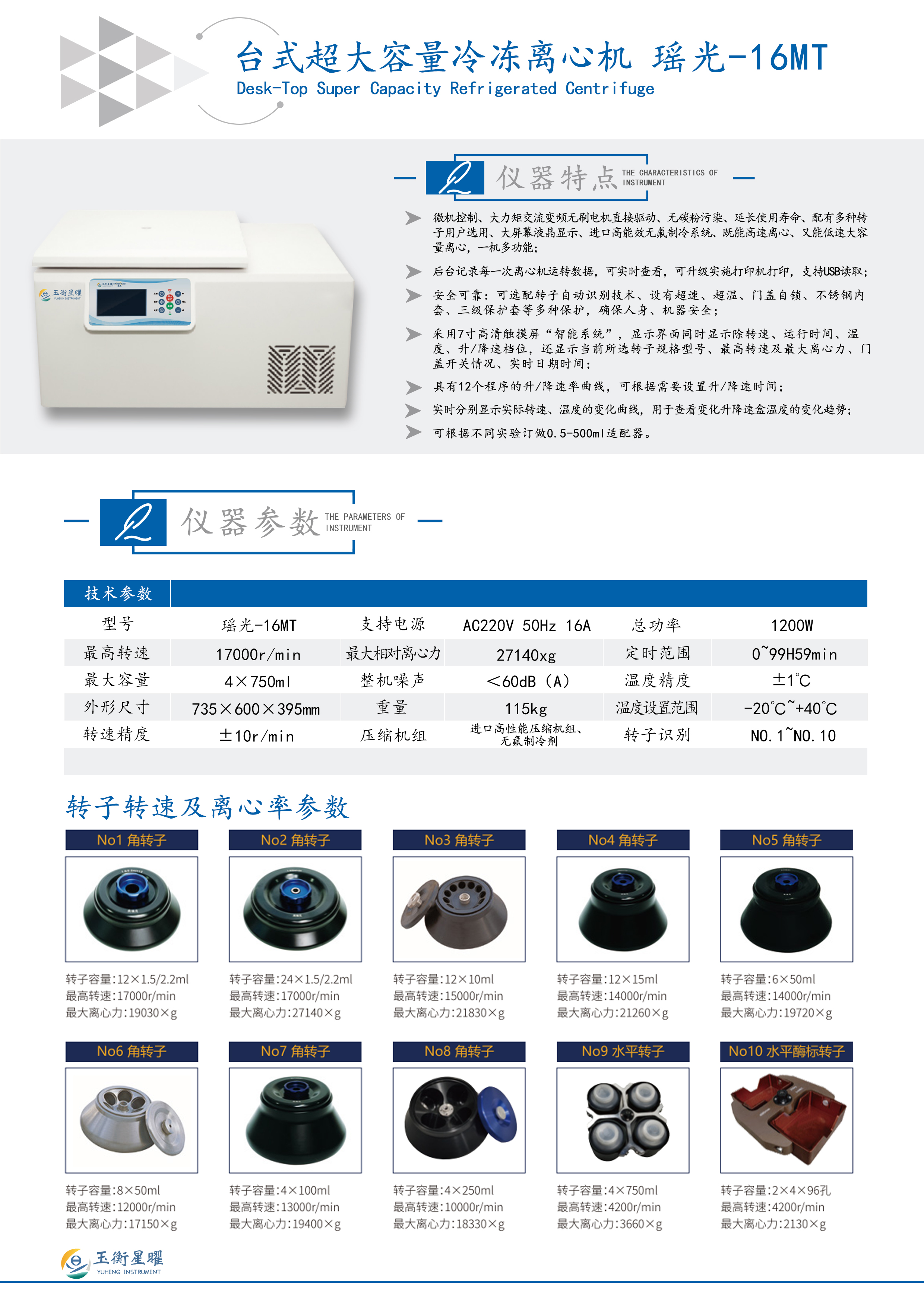 1、微機(jī)控制、大力矩交流變頻無刷電機(jī)直接驅(qū)動(dòng)、無碳粉污染、延長使用壽命、配有多種轉(zhuǎn)子用戶選用、大屏幕液晶顯示、進(jìn)口高能效無氟制冷系統(tǒng)、既能高速離心、又能低速大容量離心,一機(jī)多功能;