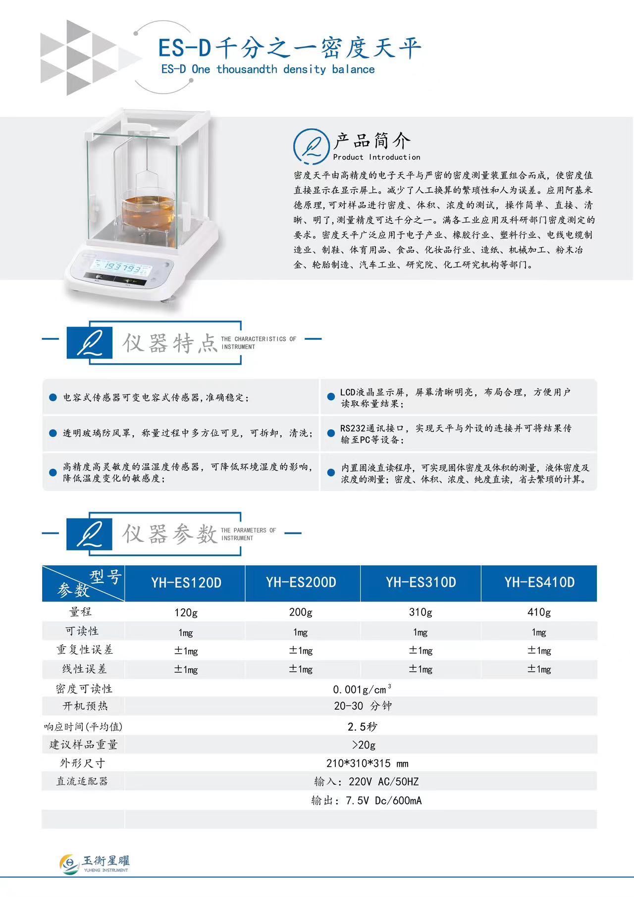 密度天平由高精度的電子天平與嚴密的密度測量裝置組合而成,使密度值直接顯示在顯示屏上。減少了人工換算的繁瑣性和人為誤差。應用阿基米德原理,可對樣品進行密度、體積、濃度的測試,操作簡單、直接、清晰、明了,測量精度可達千分之一。滿各工業應用及科研部門密度測定的要求。密度天平廣泛應用于電子產業、橡膠行業、塑料行業、電線電纜制造業、制鞋、體育用品、食品、化妝品行業、造紙、機械加工、粉末冶金、輪胎制造、汽車工業、研究院、化工研究機構等部門。