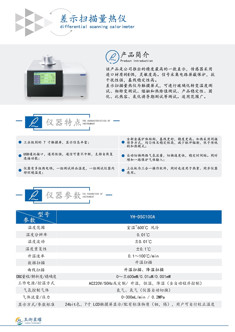 示掃描量熱儀YH-DSC100A技術特點