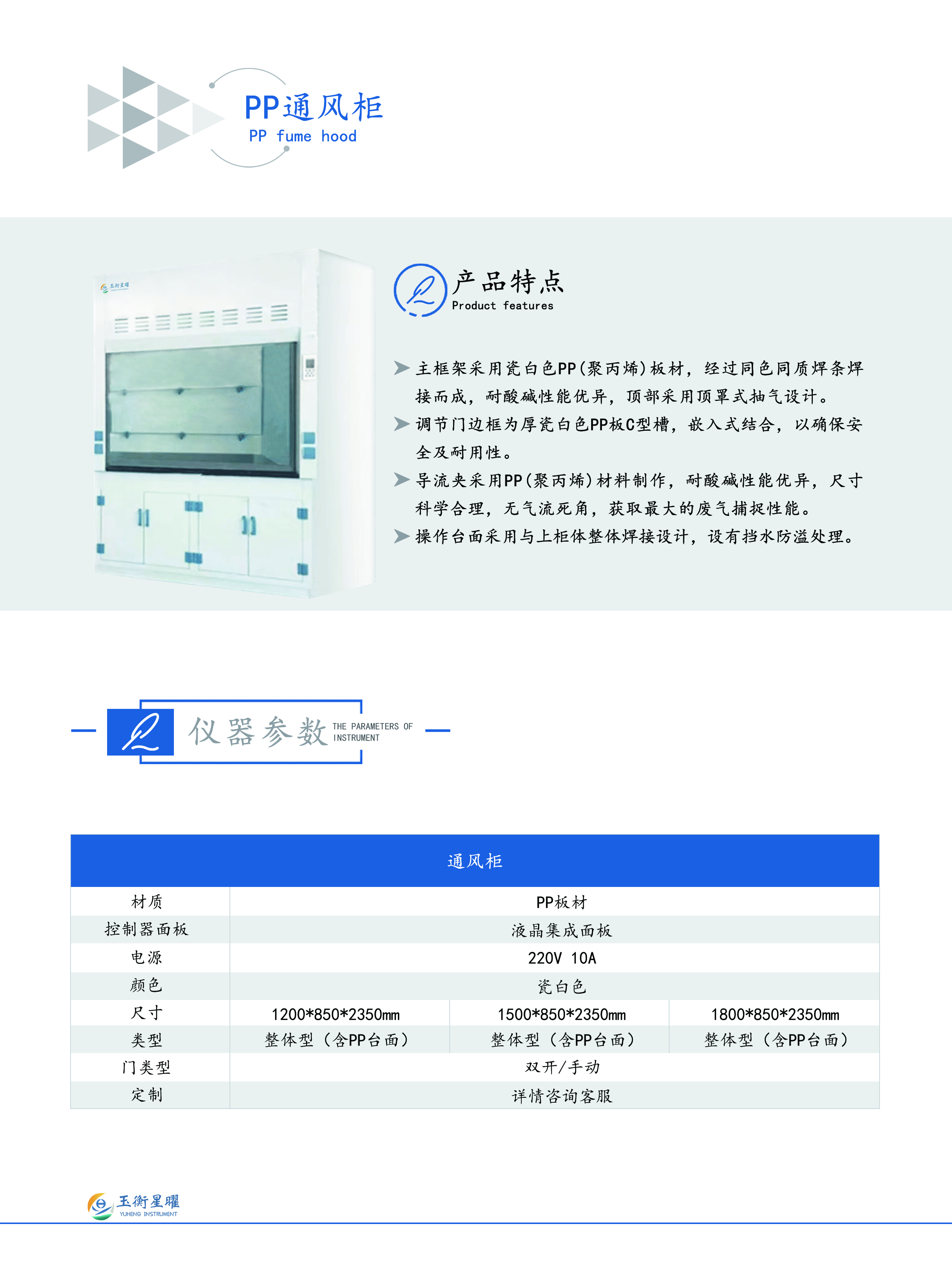 1、主框架采用瓷白色PP(聚丙烯)板材,經過同色同質焊條焊接而成,耐酸堿性能優異,頂部采用頂罩式抽氣設計。